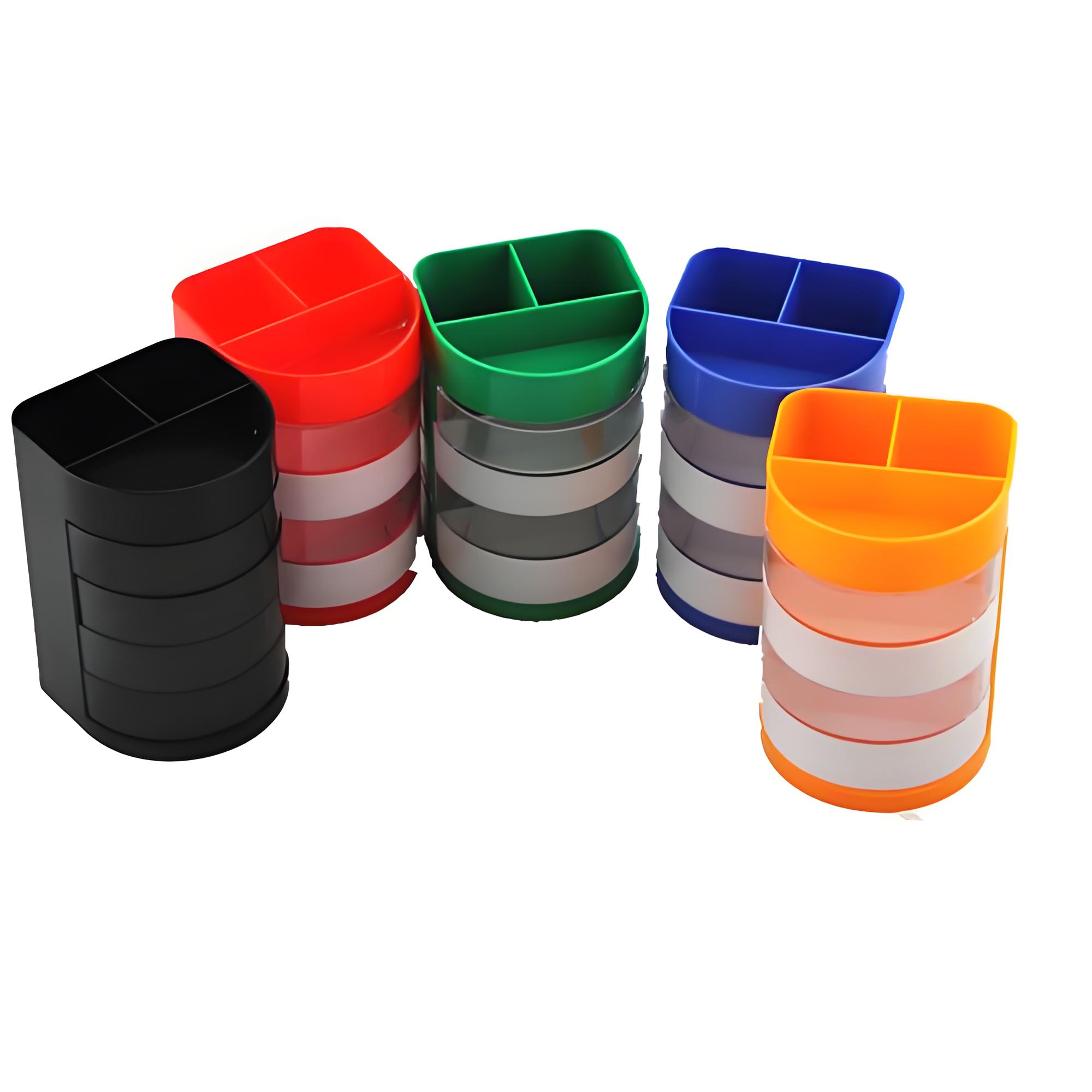 笔筒:用于存放笔、剪刀、尺子等文具,保持桌面整洁。塑料笔筒设计多样,有圆形、方形、多边形等多种形状,颜色也丰富多彩。